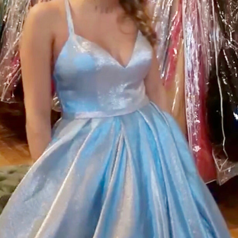 If you want to be the belle of the ball, then go with a ball gown, my love. I truly felt like a princess in this gown, Cinderella to be specific, because of the magical blue color of this dress. This gown has four very hot trends, all in one; ball gown, metallic, pockets and pastel blue. Ball gowns are flattering for any figure. This was truly one of my favorites and is perfect for a senior who wants to make a statement this prom.